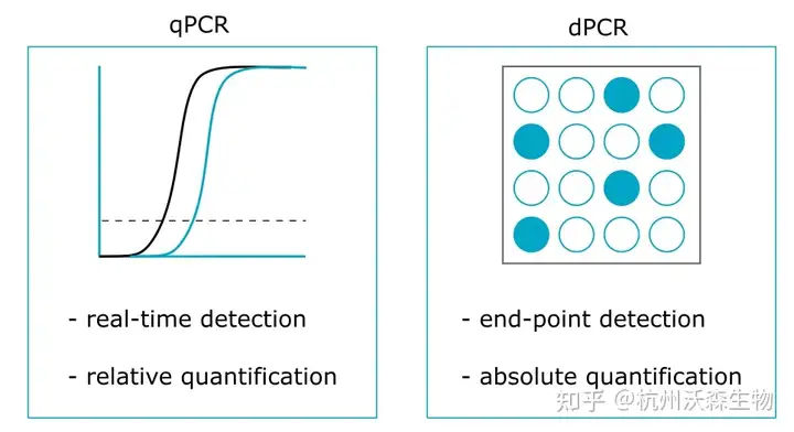 | qPCR | ◾动态范围较宽,适合高浓度样本的检测,在低浓度范围内,定量能力有限; |