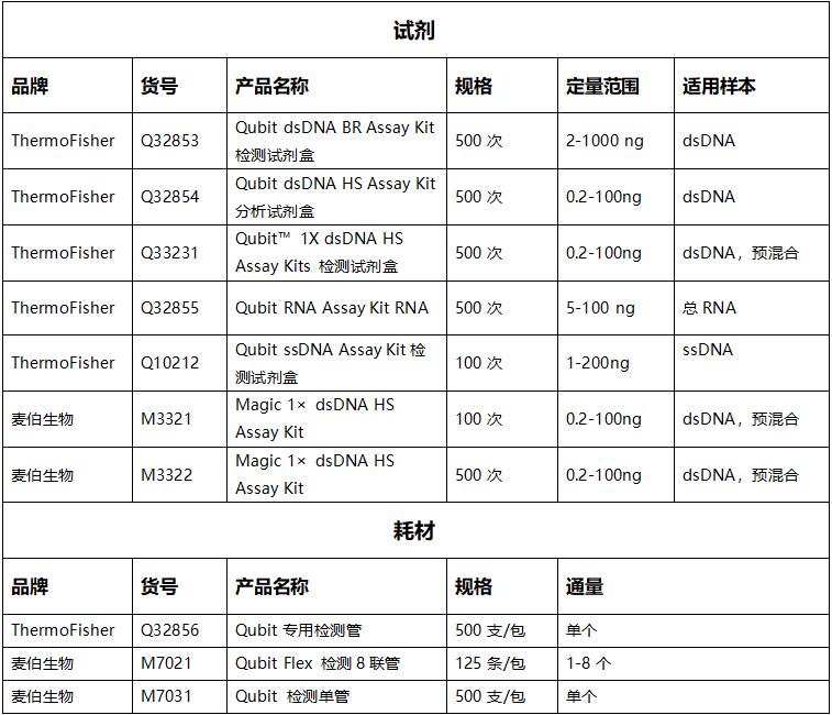 Qubit试剂耗材选择指南(Thermo/麦伯)