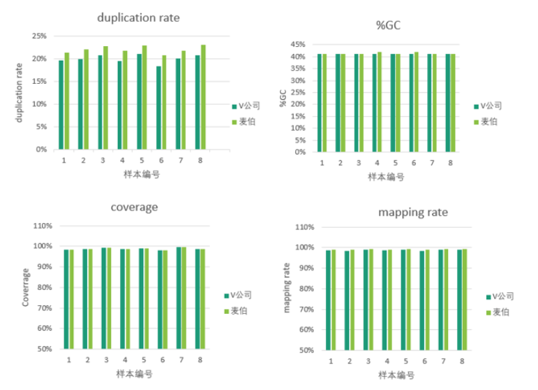 **的实验性能:以水稻样本DNA为模板,与V公司试剂在同一条件下进行建库、测序,下机数据抽平后进行分析,结果显示麦伯产品在duplication、%GC、coverage、mapping rate等方面数值均与V公司接近,性能良好,可放心选择。本公司产品可搭配自动化方案,保姆式的售后,是您科研路上的*佳搭档。