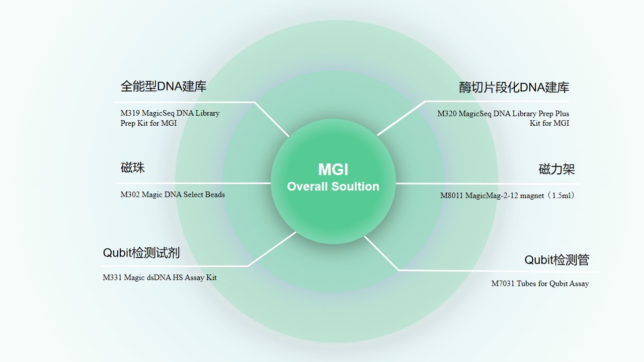 MagicSeq DNA Library Prep Plus Kit for MGI是针对Illumina测序平台/华大测序平台开发的DNA文库构建试剂盒。试剂盒包含片段化模块,利用时间依赖型酶促反应的原理将双链DNA随机切割成200-500bp的片段,并通过优化的末端修复、接头连接、文库扩增等步骤,可将20ng-300ng的片段化dsDNA转化为DNA文库,具有较高的文库转化率和扩增文库产出。适用于各种样本类型和物种来源,包括各原核真核基因组、动植物基因组、人基因组等。