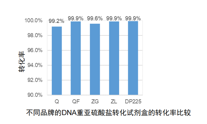 不同品牌的DNA重亚硫酸盐转化试剂盒的转化率比较